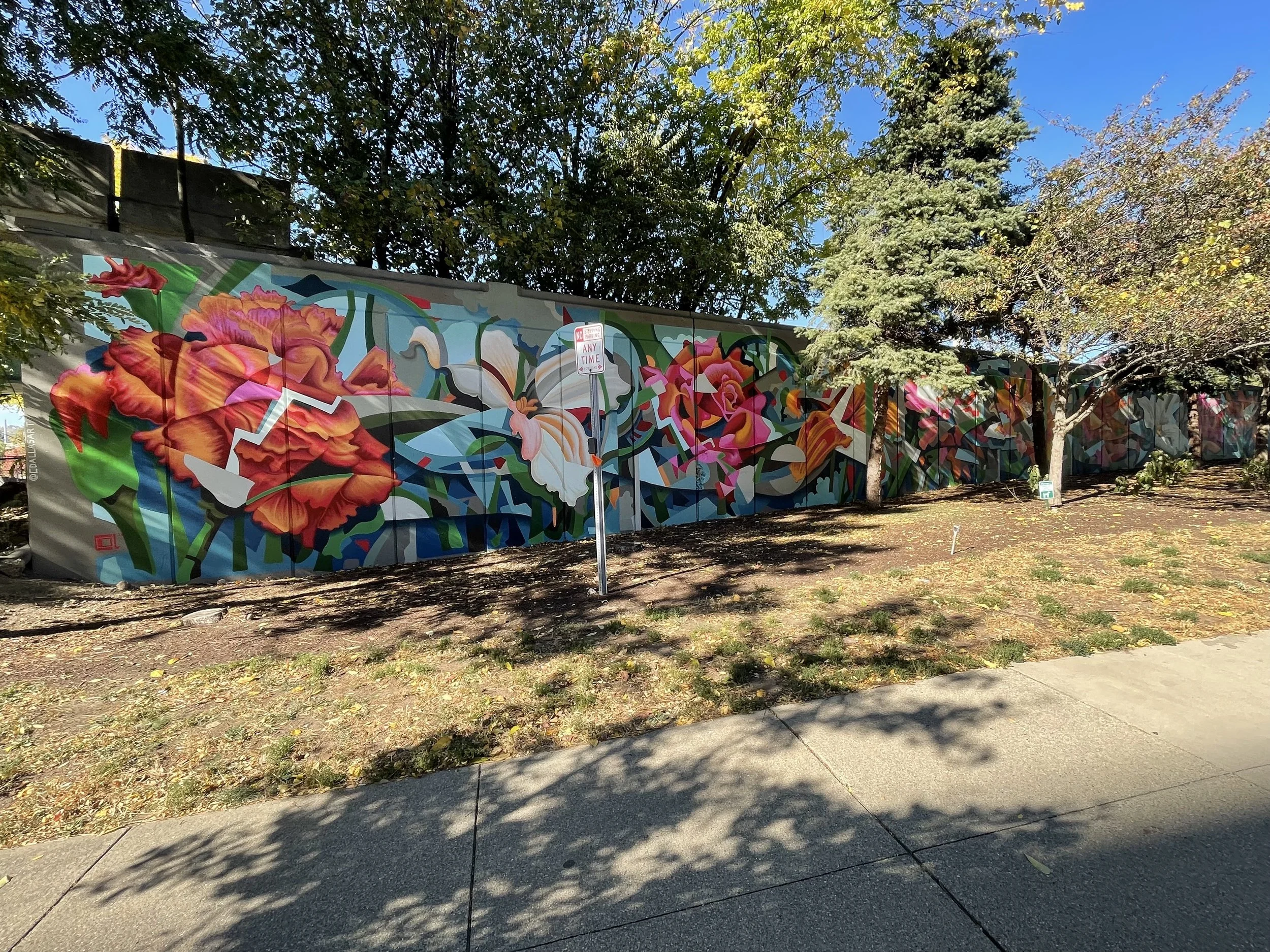 This project is in partnership with the developer 3CDC . 3CDC asked for a design and mural to brighten up this small dog park, and add some TLC to a green space many downtown residents use daily.